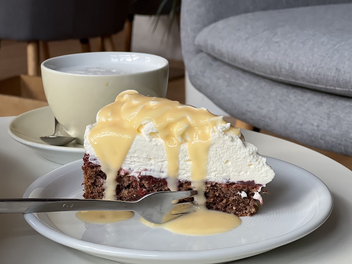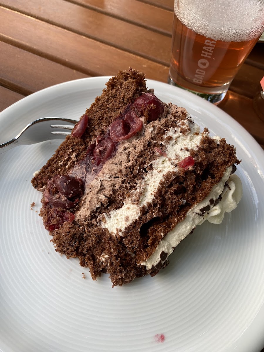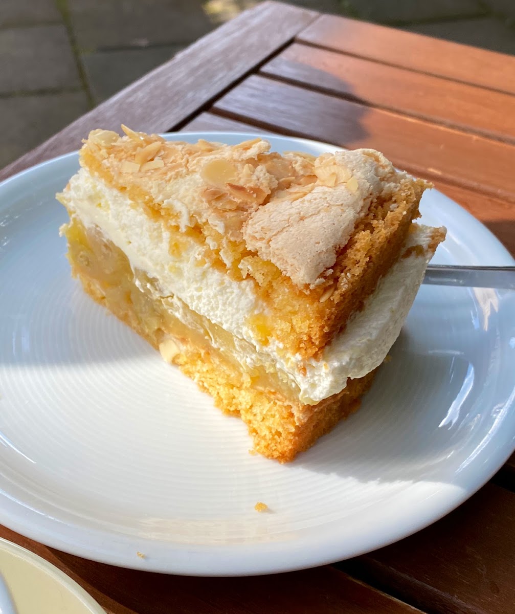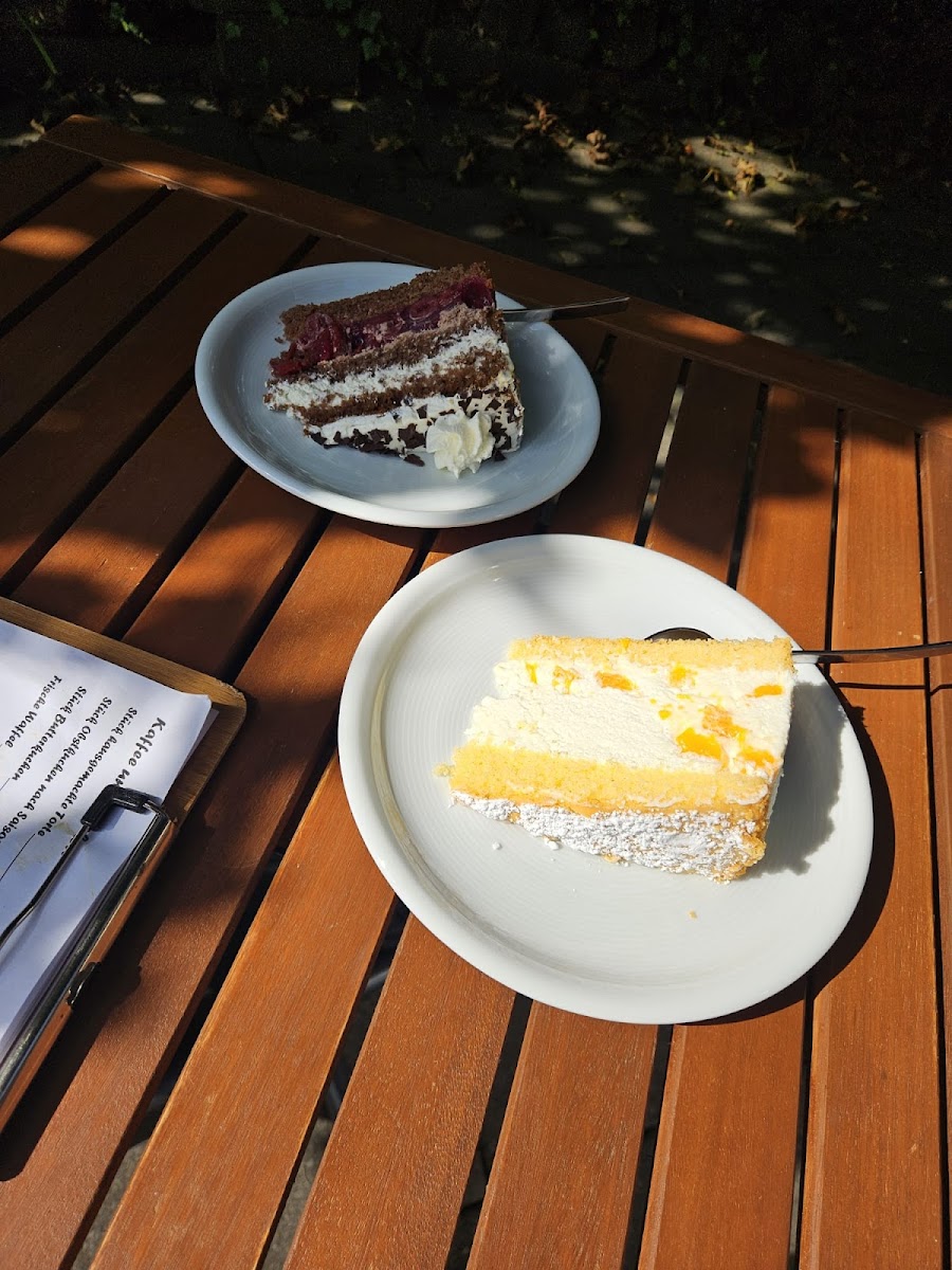 The menu leans into traditional German cakes—Eierlikörtorte, Apfeltorte, and Schwarzwälder Kirsch Torte are highlights—each baked in-house with a noticeable balance that avoids overwhelming sweetness. Guests often come here seeking a straightforward but satisfying cake-and-coffee experience without sifting through extensive options. The simplicity serves as a quiet invitation to linger, whether on an afternoon break or as part of a light local meal, with hearty Eintopf available for those wanting something savory and warming.