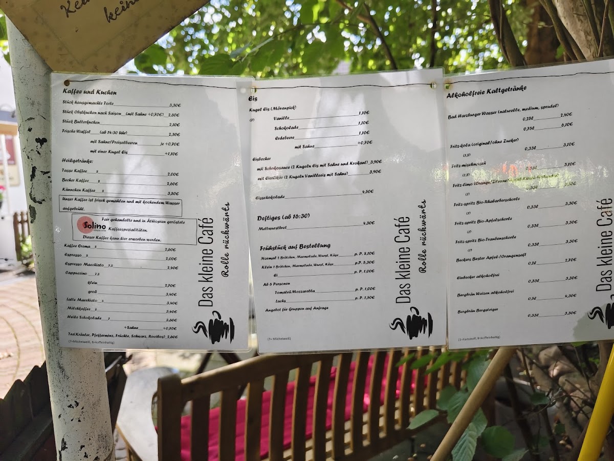 The menu at Das kleine Café Rolle rückwärts offers a selection primarily focused on homemade cakes and traditional café fare, suitable for coffee breaks and light afternoon meals. Visitors can expect a variety of freshly prepared desserts, including specialties such as Eierlikörtorte, Stachelbeekuchen, Apfeltorte, Kuchen mit Eierlikör, and Schwarzwälder Kirsch Torte. In addition to sweet options, the menu includes savory choices like Eintopf, providing a simple light meal alternative.